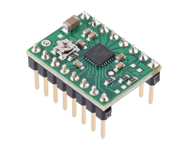 This version of our DRV8434S SPI Stepper Motor Driver Carrier, Potentiometer for Max. Current Limit ships with male header pins installed, so no soldering is required to use it with an appropriate 16-pin socket or solderless breadboard. Please see the DRV8434S SPI Stepper Motor Driver Carrier, Potentiometer for Max. Current Limit product page for more information about the driver.
