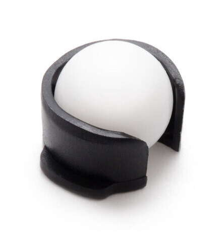 This ball caster was originally released as a replacement part for the 3pi robot, but the 1/2″ ball can also be used a replacement part for the newer 3pi+ robot, which has the housing for the ball built directly into the chassis. This ball caster can also be used as a general-purpose ball caster: when mounted through a hole in a chassis that uses our micro metal gearmotors and our 32×7mm wheels, as on the 3pi, this ball caster is just the right height to keep the chassis level.