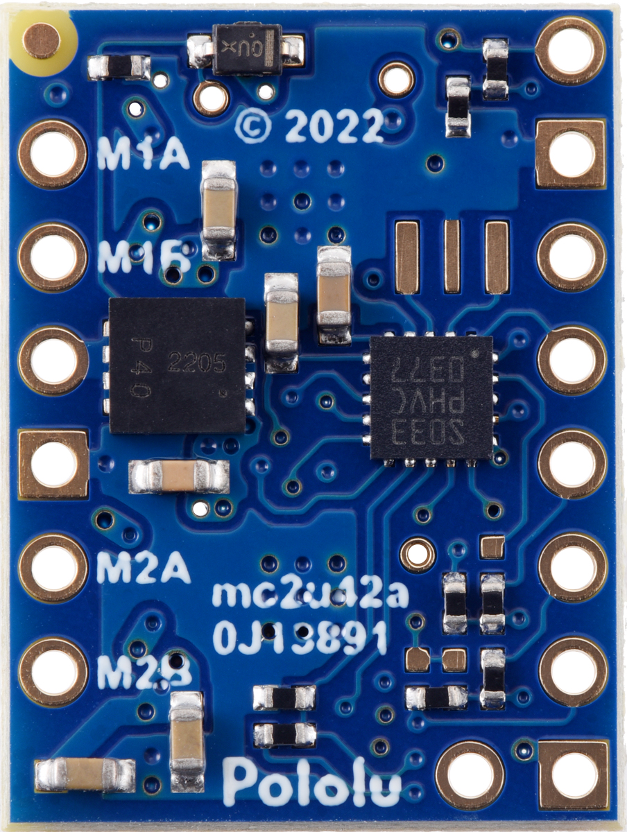 Meanwhile, I²C has become more popular and easier to use on microcontrollers over time, and it has features like open-drain lines and built-in support for addressing that simplify working with several devices on a single bus. This was the reason for the Motoron family’s initial focus on I²C, which was a departure from our tradition of making serial motor controllers, but the M2U256 reflects our thinking that there are still some reasons to use asynchronous serial. For example, it’s still easier to connect a PC to a serial device (with a USB or RS-232 adapter) than to an I²C device. We expect to make more UART Motorons in the future, too.