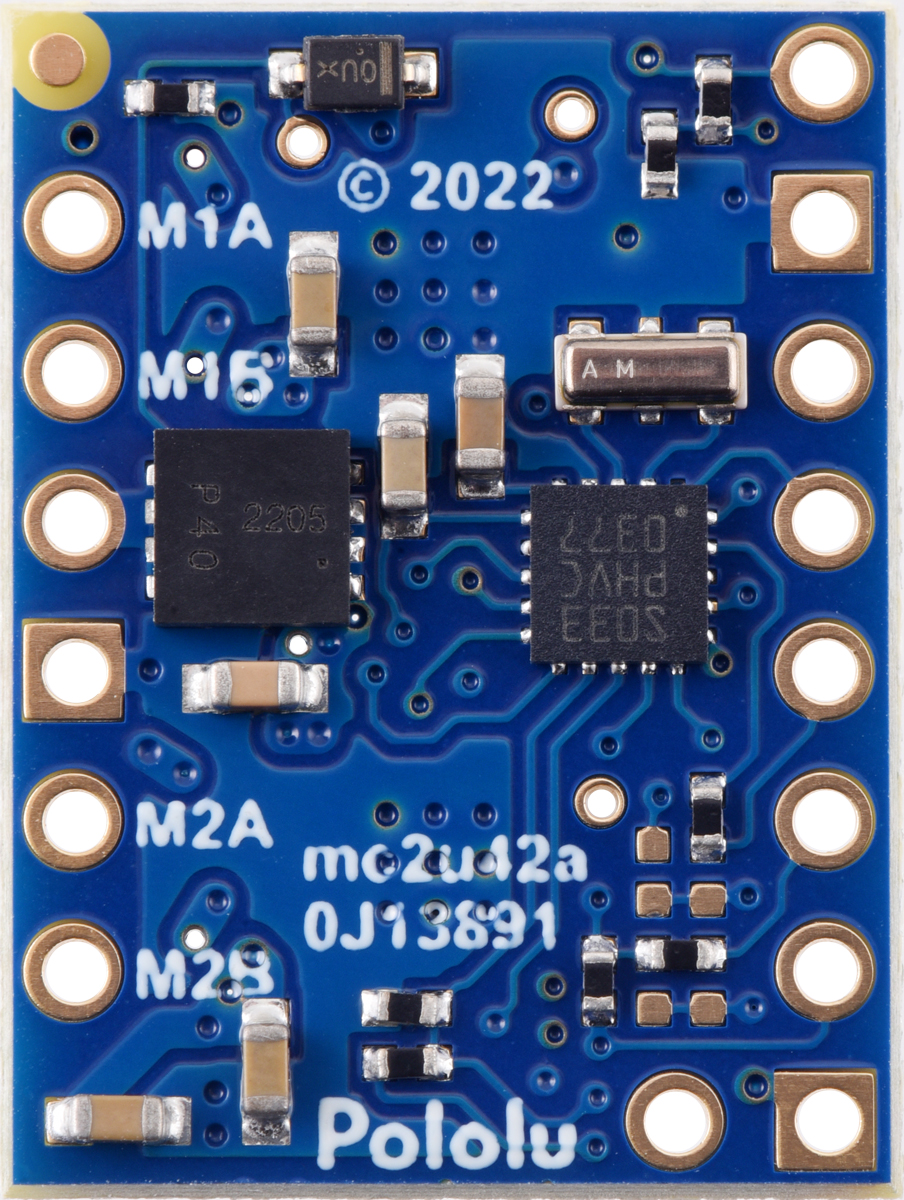 Motoron M2U256 Dual Serial Motor Controller, bottom view.