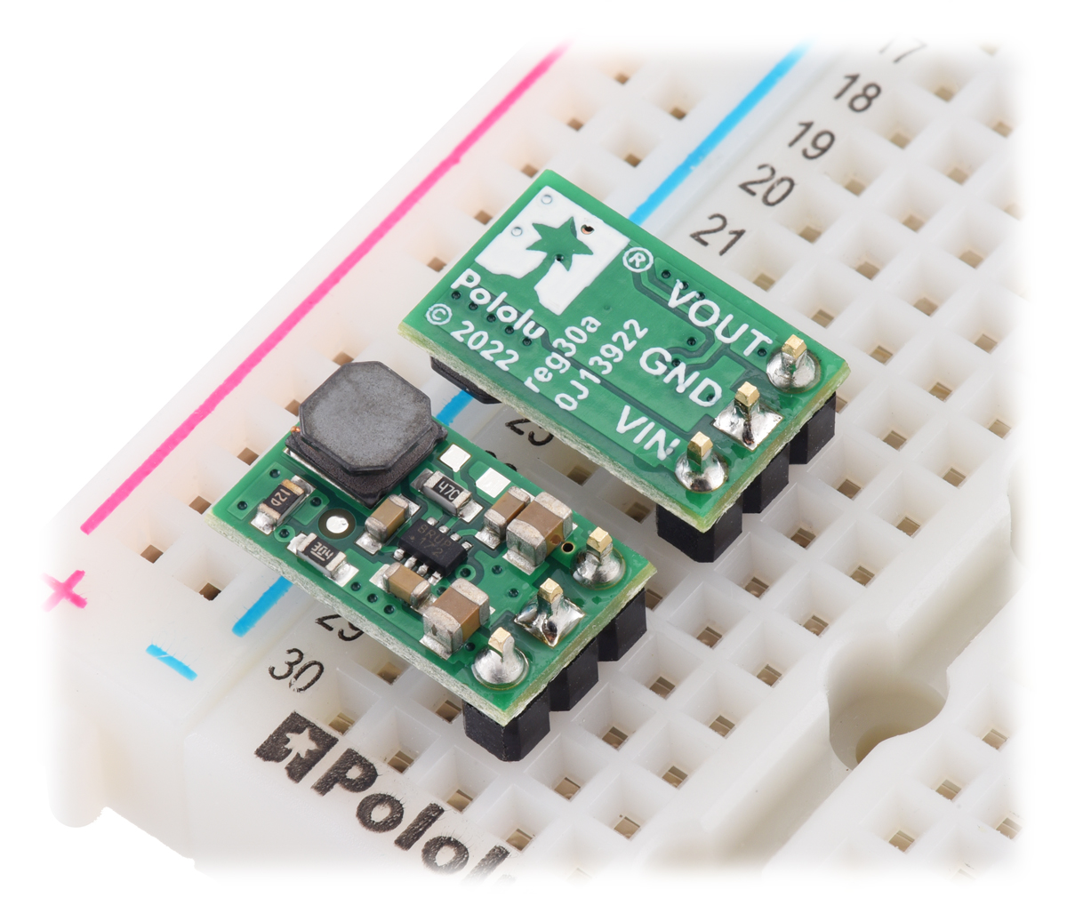 These new regulators are the same size as the popular U3V12Fx boost regulators, which we had to discontinue due to key components becoming obsolete, and they offer superior performance, so they should work as drop-in replacements for those older regulators in most applications.