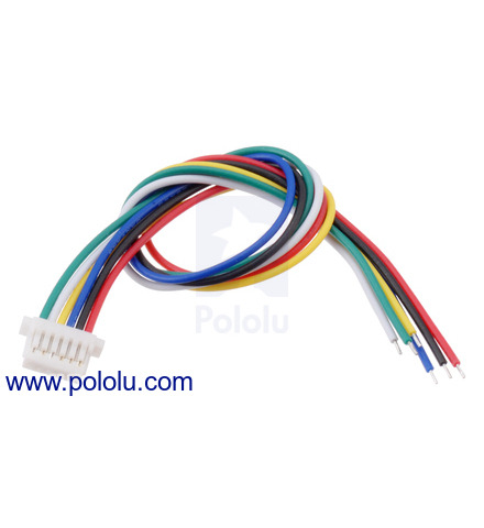 This 12 cm (4.5″) cable has six 28 AWG wires and a 6-pin female JST SH-type connector that works with our Micro Metal Gearmotor Encoders with top-entry connectors and with side-entry connectors. The other ends of the wires are unterminated; they can be cut to length to match your application.