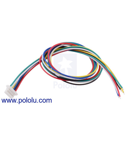 This 75 cm (30″) cable has six 28 AWG wires and a 6-pin female JST SH-type connector that works with our Micro Metal Gearmotor Encoders with top-entry connectors and with side-entry connectors. The other ends of the wires are unterminated; they can be cut to length to match your application.