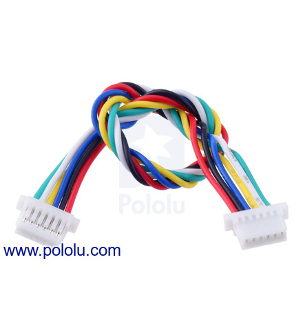This 16 cm (6.3″) cable has six 28 AWG wires and 6-pin female JST SH-type connectors on both ends. These connectors work with our Micro Metal Gearmotor Encoders with top-entry connectors and with side-entry connectors as well as our breakout boards with top-entry and side-entry connectors.
