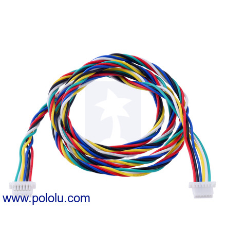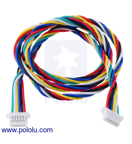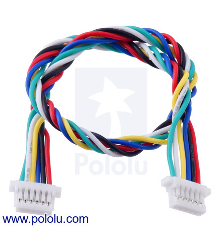 This 63 cm (25″) cable has six 28 AWG wires and 6-pin female JST SH-type connectors on both ends. These connectors work with our Micro Metal Gearmotor Encoders with top-entry connectors and with side-entry connectors as well as our breakout boards with top-entry and side-entry connectors.