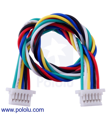 This 40 cm (16″) cable has six 28 AWG wires and 6-pin female JST SH-type connectors on both ends. These connectors work with our Micro Metal Gearmotor Encoders with top-entry connectors and with side-entry connectors as well as our breakout boards with top-entry and side-entry connectors.