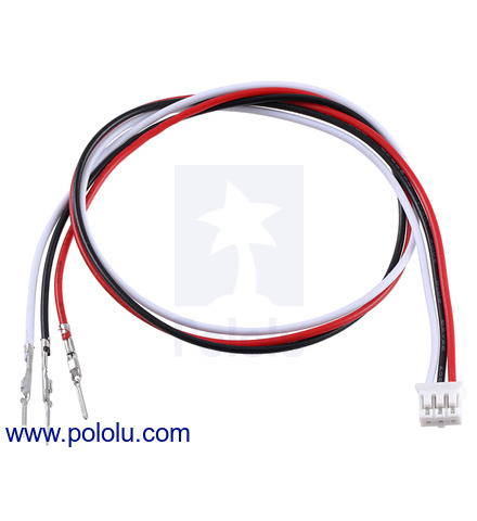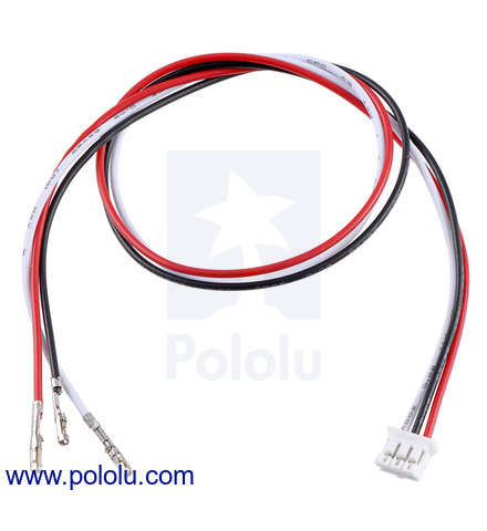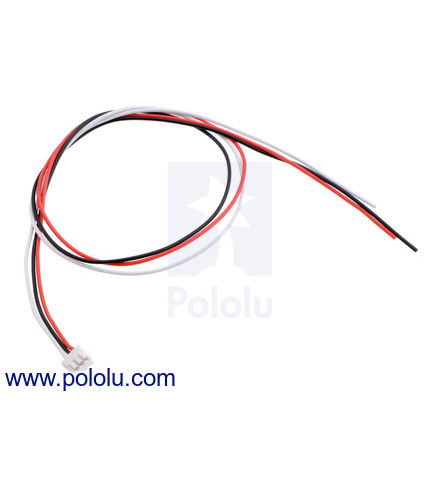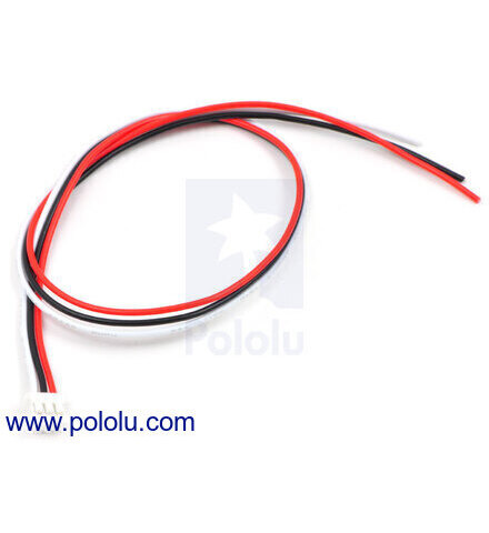 This 12-inch (30-cm) cable has 26 AWG wires and a 3-pin female JST PH-style connector that works with Sharp analog distance sensors that have mating PH connectors. The other ends of the wires are unterminated; they can be cut to length to match your application. The wire color scheme matches the Sharp distance sensor pinout: red for power, black for ground, and white for signal.