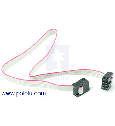 This 12" (30 cm), 6-conductor ribbon cable has a female 2×3 IDC connector on each end that is designed to plug into a 0.100" (2.54 mm) 2×3 shrouded box header. It can also be used with 0.100" male header pins.