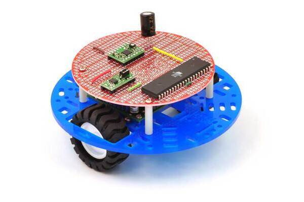 The Romi chassis is a differential-drive mobile robot platform with a diameter of 6.5″ (165 mm). The plastic components making up the chassis are available in six colors, either individually or in kits including motors and battery contacts. Control electronics and quadrature encoders are also available.
