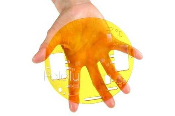 The Pololu round robot chassis is a compact 5-inch base, laser-cut out of colored acrylic, designed for use with Tamiya twin-motor gearbox, ball caster, and truck tires, which you can get for a discount with our various chassis completion kits.