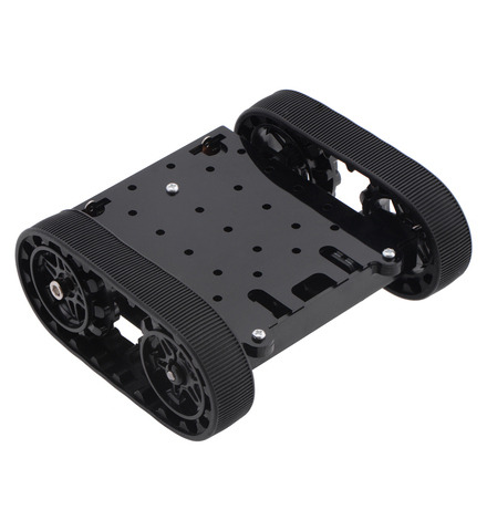 The Pololu Zumo chassis is a small, tracked robot platform that is less than 10 cm on each side, allowing it to qualify for Mini Sumo competitions. The chassis is composed of black ABS and features a compartment for four AA batteries and sockets for two micro metal gearmotors. It ships as a kit with two silicone tracks, two drive and two idler sprockets, a 1/16″ acrylic mounting plate, and mounting hardware. (Motors and batteries are not included.)