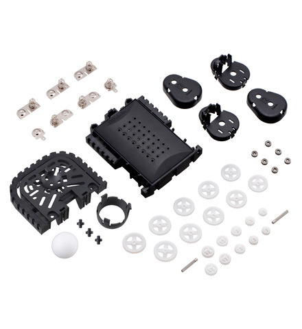 This kit gives you the structural pieces you need to build your own Balboa chassis with stability conversion. The chassis includes an integrated battery holder that can be configured for 4 or 6 AA cells. Two configurable gearboxes further increase the gear ratio from the required micro metal gearmotors while supporting the weight of the robot with ball bearings rather than the gearmotor shafts themselves. The chassis works with a variety of wheel sizes and micro metal gearmotors, so wheels and motors are not included; choose your own wheels and motors to personalize your robot.