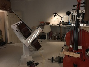 So the project is headed towards having a fully artificially intelligent score where the music is generated on the spot and then played. The project is designed to also play in a museum environment where it will sit and play for its audience forever evolving music, with the intensity of the compositions controlled by the number of people it is playing to. However, it is currently in a more generative state where it will play music based on a set of musical rules from which it generates the music. This is where my collaborator Greg came into the project, developing patches in MAX MSP that generate the compositions and then work out which string on which cello to send each note to.