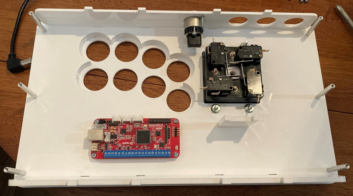 It can be a little tricky to put together. I didn’t realize that the joystick switches had tabs that extended beyond the sides of the joystick, so it couldn’t slide into the case. To get around this, the joystick just has to be taken apart and put back together inside the case.