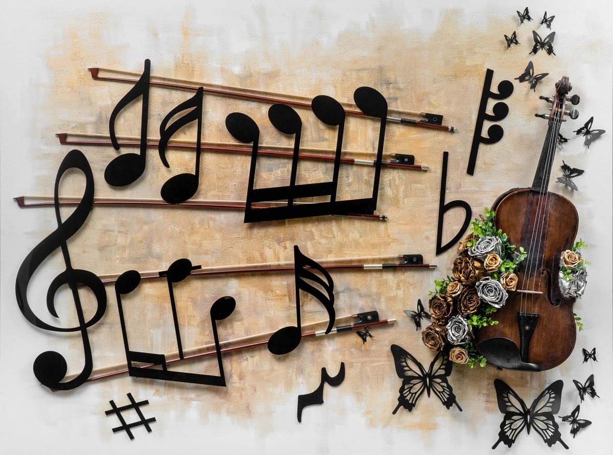 Black acrylic notes from Tammy Carmona’s artwork, “Serenade”.