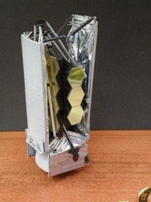 JWST model, folded as it would be inside the Ariane 5 payload bay.