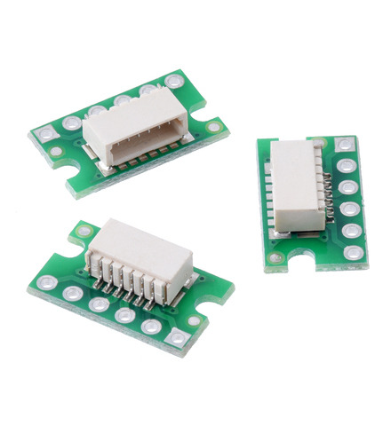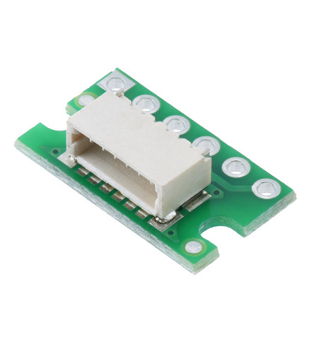 This simple board serves as an adapter between a JST SH-style 6-pin male connector and breadboard-compatible 0.1″-pitch through holes. It works with our assortment of 6-pin female JST SH-style cables and can be used to more easily access the pins of our Micro Metal Gearmotor Encoders with top-entry and side-entry connectors. The silkscreen on the bottom side of the board is labeled with this specific application in mind, indicating which pin on the breakout board would correspond to which pin on the encoder.