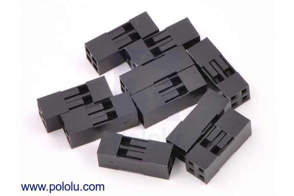 This connector, a smaller version of the female Tamiya connector, is commonly used with battery packs for RC applications. The connector is keyed so that power cannot be reversed, and a latch secures the connection so that it will not become disconnected. You can use a crimping tool to attach these connectors to your own 16- to 20-AWG wires. This pack contains enough housings and crimp pins (including two spare pins) for 3 female connectors.