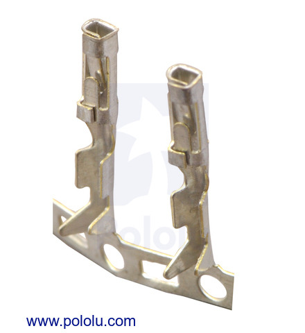 These female pins can be crimped on 22-28AWG wires and snapped into our crimp connector housings to create custom cables that are compatible with standard 0.1"-pitch headers and solderless breadboards. Our wires with pre-crimped terminals and premium jumper wires use these same pins. One female crimp pin pack consists of 100 pins.
