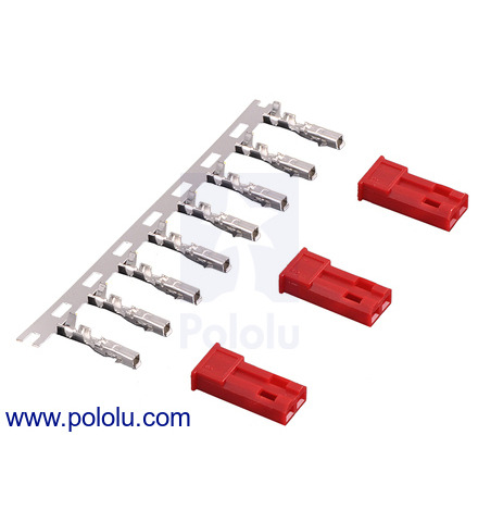 This style of high-current connector is commonly used with the 7.2V sub-C battery packs that power many RC cars. The connector is keyed so that power cannot be reversed, and a latch secures the connection so that it will not become disconnected. You can use a crimping tool to attach these connectors to your own 14- to 20-AWG wires. This pack contains enough housings and crimp pins (including two spare pins) for 3 female connectors.