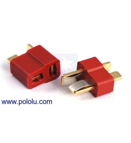 These are generic connectors similar to the popular Deans Ultra Plug connectors. They are sold as matching male-female pairs and have a current rating of 50 A. They are the smallest high-current connectors we know of, and they are great for projects that involve bigger motors and controllers, such as our Simple Motor Controllers and high-power motor drivers.