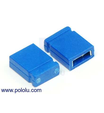 Blue shorting block (removable jumper) designed for 0.1" (2.54 mm) male header pins.