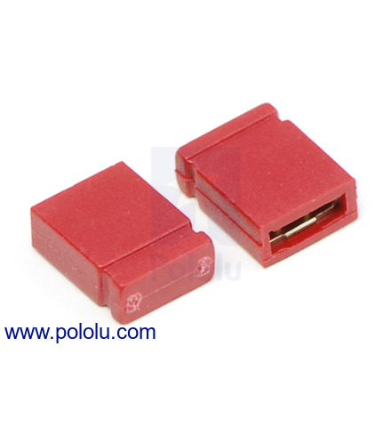 Red shorting block (removable jumper) designed for 0.1" (2.54 mm) male header pins.