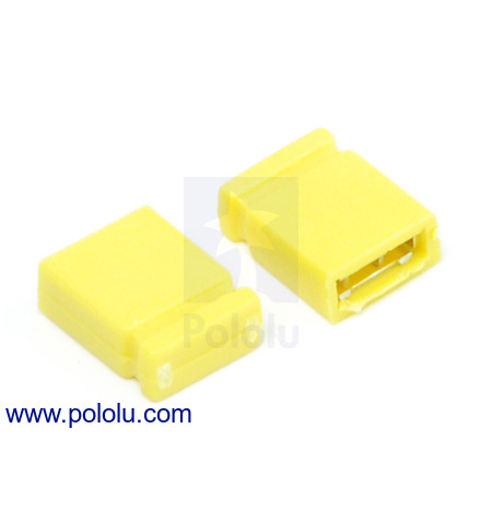Yellow shorting block (removable jumper) designed for 0.1" (2.54 mm) male header pins.