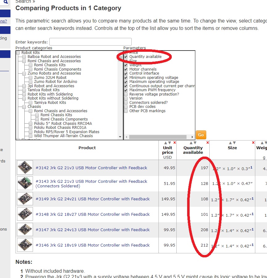 On a related note, it’s a little bit easier for us if you order the item that has more stock. Each product page has links to relevant parametric comparison tables that can help you identify similar products that might have more available stock: