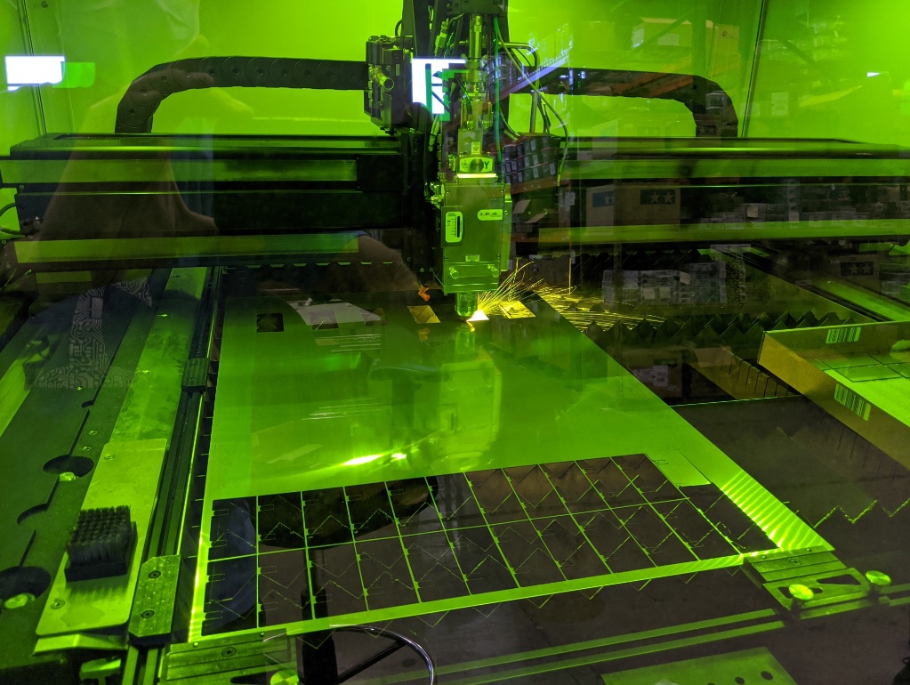 Laser cutting Zumo blades at Pololu on 22 April 2020. |