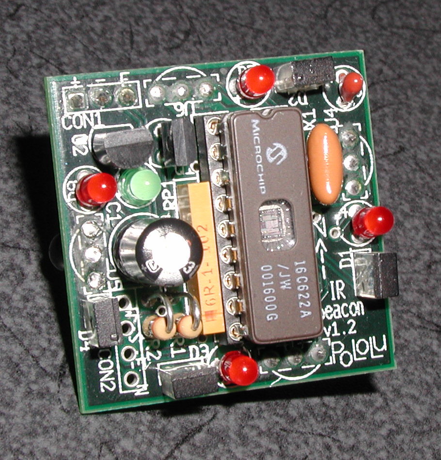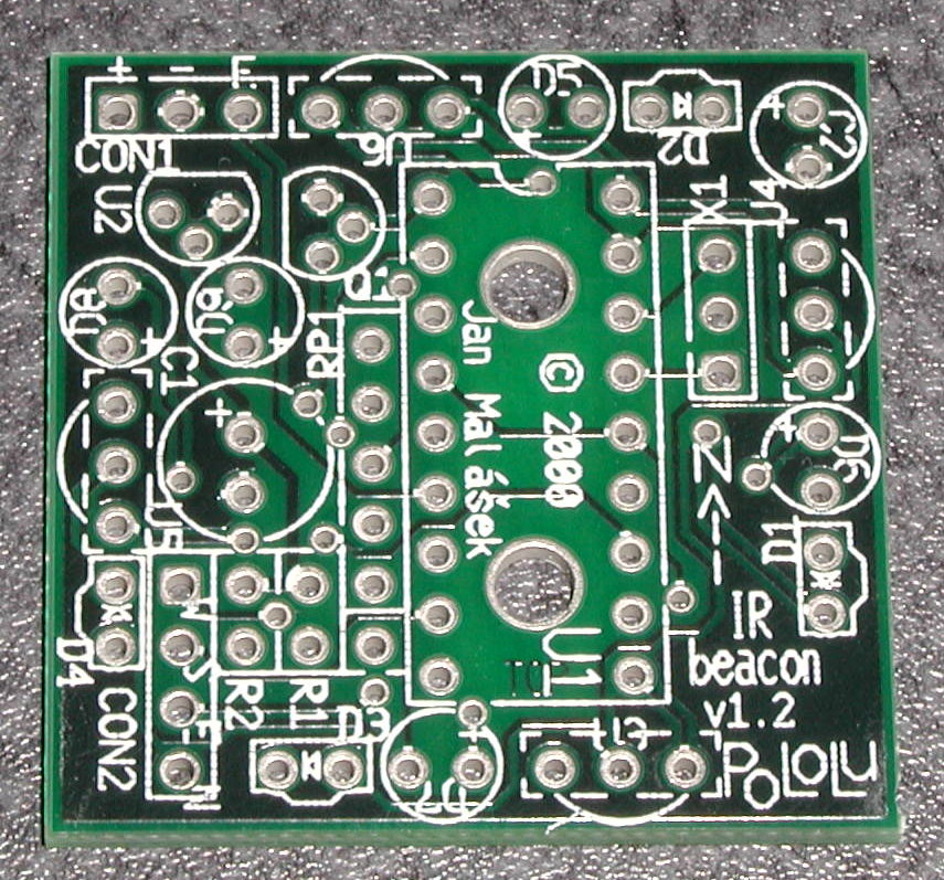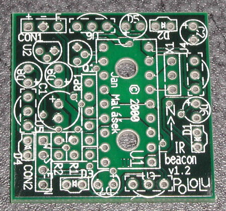IR Beacon PCB showing “Pololu” name and copyright 2000; picture date 12 November 2000. |