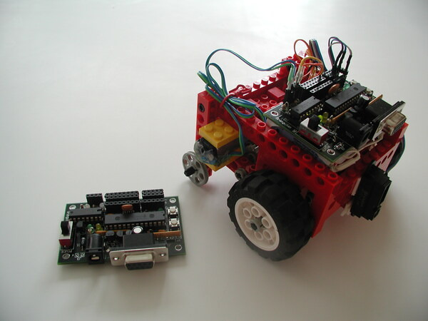 Most of our time was devoted to school, though we did keep working on products we thought we would eventually release, especially when we could incorporate it into our classwork. This first prototype of our Orangutan robot controller (flash programmable microcontroller with a serial bootloader, plus integrated motor drivers) was also part of our final project for our 6.836: Embodied Intelligence class: