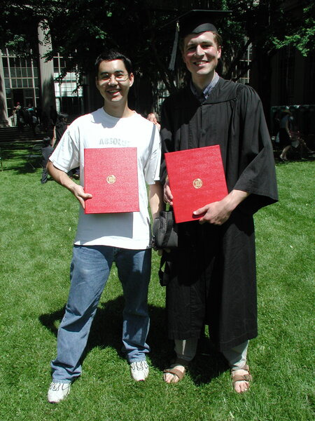 Paul and I were class of 2001, so we were close to done with our undergraduate degrees, and I was effectively a grad student that last semester of my fourth year. I skipped the graduation ceremony, but the lab I was working at was right next to the site anyway, and Paul spotted me one of his diplomas so I could feel a little more festive.