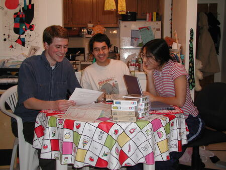 This was all still before the 9/11 terrorist attacks, which we experienced quite intensely because of the two flights originating from Boston. Paul had moved out of Massachusetts by then, and I had moved out of the dorms to an apartment in Watertown. Paul visited Candice and me there in February 2002, where we at least remembered to take a picture of our board of directors meeting: