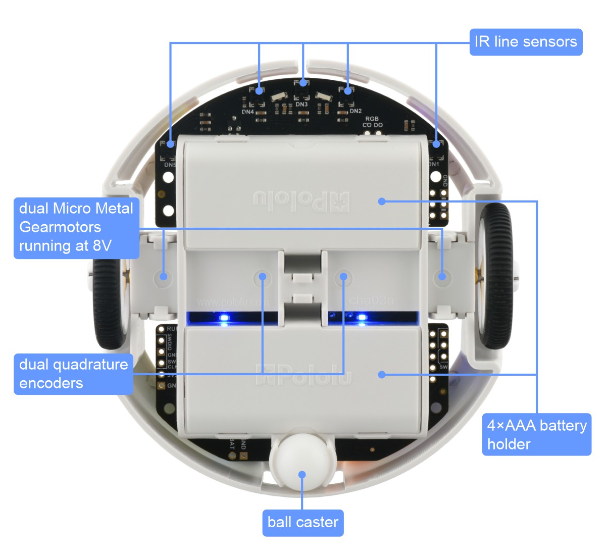 Early adopter special: We are initially offering the 3pi+ 2040 Robot as a limited release intended for advanced customers who have had some experience with robotics or Raspberry Pi RP2040 programming (e.g. with a Raspberry Pi Pico). The initial release is available with 30:1 MP motors (the “Standard Edition”), either assembled for 38% off or in kit form for 50% off. Early adopter robots will generally need to be backordered as they are built to order; we expect to ship within a business day of ordering. The robot hardware is finalized so the only changes we expect for the full product release are in the initial firmware configuration and pre-installed example programs. Documentation will also continue to be developed as we release the robot to a wider customer base. Early adopters who publicly share their 3pi+ 2040 experiences will be eligible for an additional robot with an extra $25 discount.
