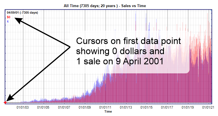 All-time sales chart showing first order on 9 April 2001. |