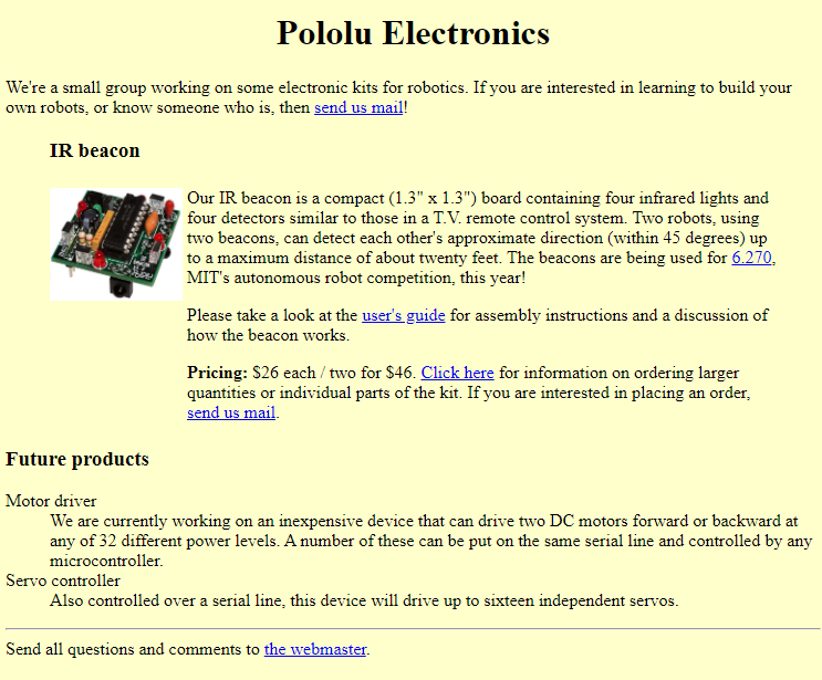 Reconstruction of how pololu.com looked in February 2001. |