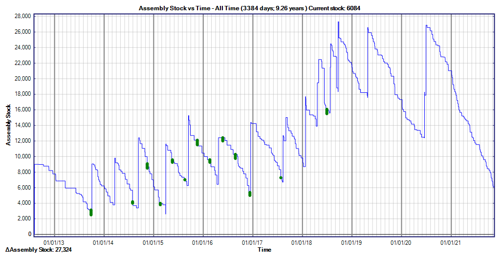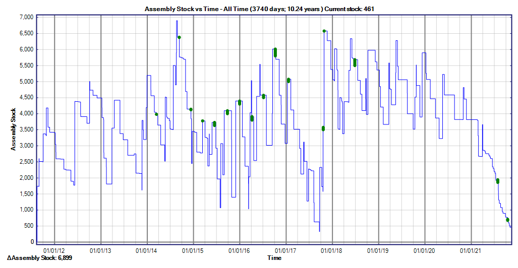 10-year inventory history for a component being rationed in 2021. |