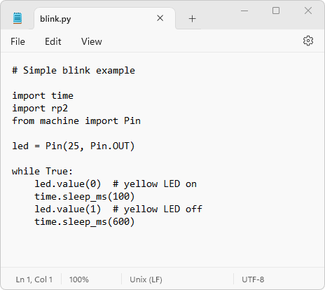 There are many other programming environments and languages that you can use with the 3pi+. Since it shares the same RP2040 processor as the Raspberry Pi Pico, anything that works for the Pico should be usable on the 3pi+, including C, C++, and the Arduino environment. We already include some basic C examples in our example code repository, and we plan to write more examples and expand the software support for this robot. Do you have a favorite IDE that works with the Pico? Is there some language or system you’d like to run on the 3pi+?