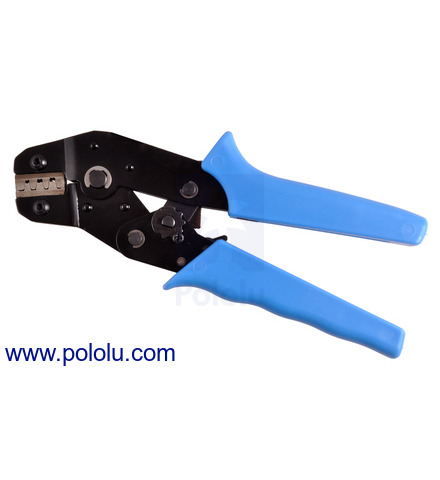This crimping tool can be used to crimp both male and female versions of our Tamiya connector crimp pins, mini Tamiya connector crimp pins, JST RCY connector crimp pins, JR crimp pins, Futaba J crimp pins, and crimp pins for 0.1″ housings onto 16-28 AWG wires to make custom cables. The crimping die has a width of 7 mm, and the tool offers ratcheting action for increased consistency and ease of use.