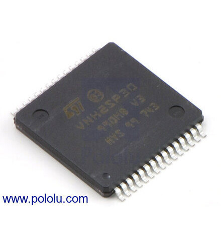 This motor driver IC from ST operates from 5.5 to 24 V and can deliver a maximum of 30 A. For more information, please see the VNH5019A-E datasheet (1MB pdf). We use this motor driver in our VNH5019 motor driver carrier and our dual VNH5019 motor driver shield for Arduino.