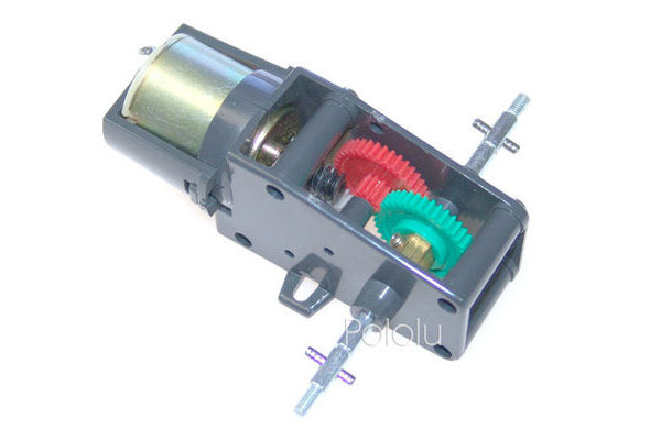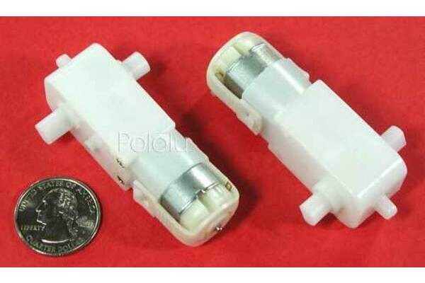 A variety of low-current brushed DC motors with plastic gearboxes that offer power and speed comparable to a continuous-rotation RC servo at a fraction of the price.
