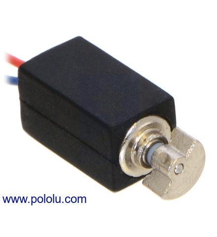 This tiny DC motor has a shaft with an offset mass that vibrates when it rotates. Motors like this are commonly found in cell phones and other devices that use vibration for tactile feedback. The motor has 1.5″ leads and is encased in a removable rubber sleeve that gives it flat surfaces for mounting and prevents it from chattering against whatever it is mounted to. It is intended for operation around 3 V (2.4 V to 3.5 V recommended).
