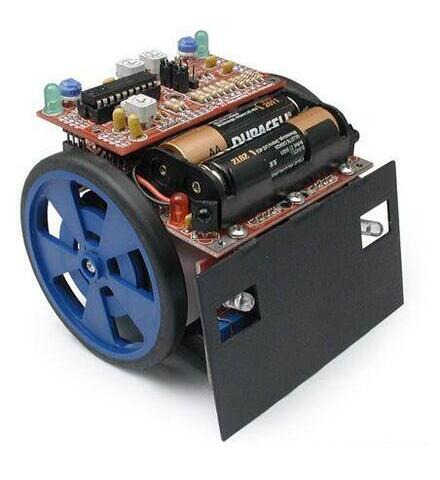 The robot kits in this section require soldering. Because they are not designed specifically as soldering tutorials, these might not make a best first soldering project. However, if you have some soldering experience (or if someone with soldering experience can help you), these kits should be straightfoward to assemble. You’ll need to supply your own soldering equipment and solder; one place to start is the learn to solder kit.