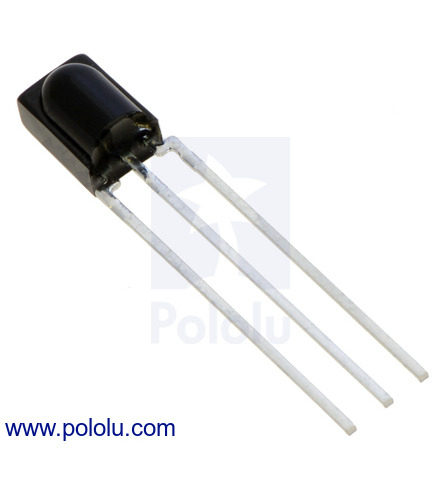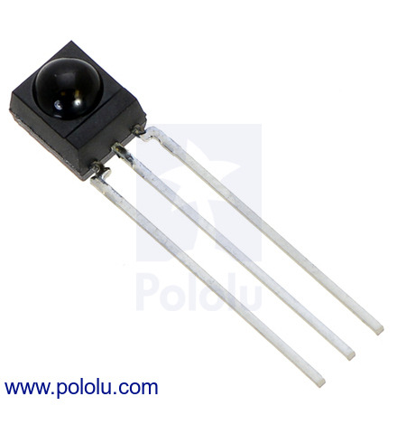 The Vishay TSOP34156 is a general-purpose modulated IR receiver for IR-based remote-control projects. It features a wide operating voltage range and allows for relatively high data rates; this particular unit is tuned for a 56 kHz carrier frequency. This is the IR receiver used in the Pololu IR Beacon.