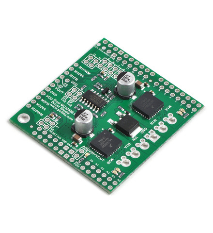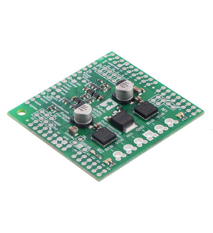 The G2 family of dual high-power motor driver shields features pairs of discrete MOSFET H-bridges designed to drive two large brushed DC motors. They can be used with an Arduino or compatible board as a shield, or they can be used as general-purpose motor drivers without an Arduino.