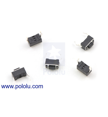These small, two-pin, normally open, momentary tactile buttons are intended for mounting to PCBs, but they can also be plugged into standard 0.1" breadboards. They work well as reset buttons and can be connected to microcontroller inputs to serve as a user-interface components. These pushbuttons are sold in packs of 5.
