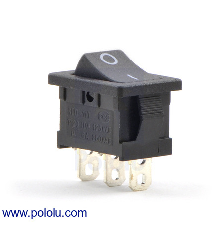 This single-pole, double-throw (SPDT) rocker switch makes a great on/off power switch. It is rated for 10 A at 125 VAC and 6 A at 250 VAC.