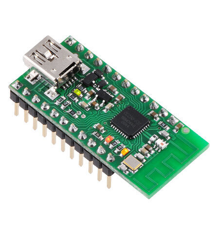 The Pololu Wixel is a general-purpose programmable module featuring a 2.4 GHz radio and USB. You can write your own software or load precompiled, open-source apps onto the TI CC2511F32 microcontroller at the heart of the Wixel, turning it into a wireless serial link, data logger, or whatever you need for your current project. With 29 KB of available flash and 4 KB of RAM, the Wixel is even suitable as the main controller for a robot or other system. This version ships with 0.1" male header pins installed as shown.